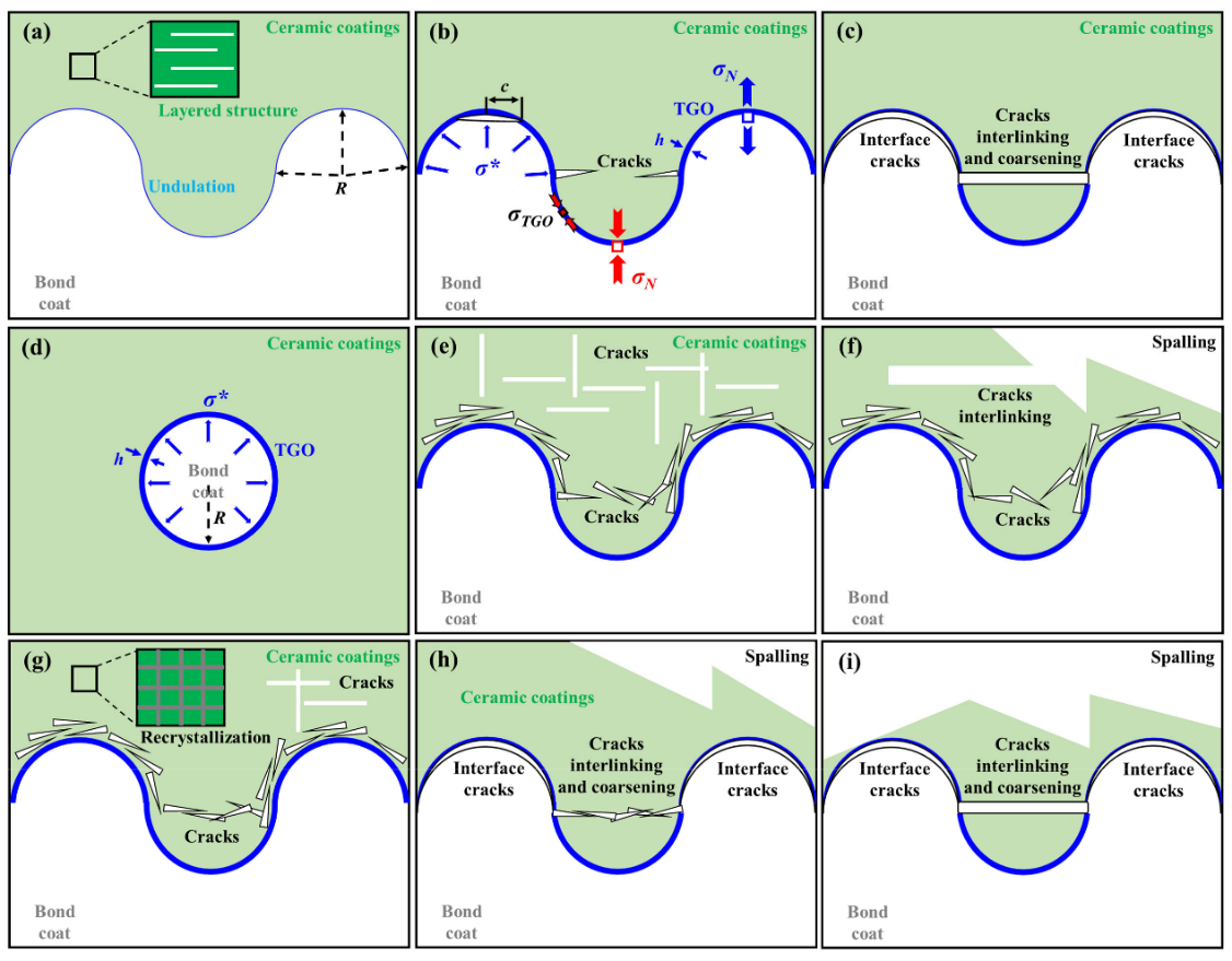 图2 高熵钽酸盐陶瓷涂层在不同热工况下的失效机制示意图