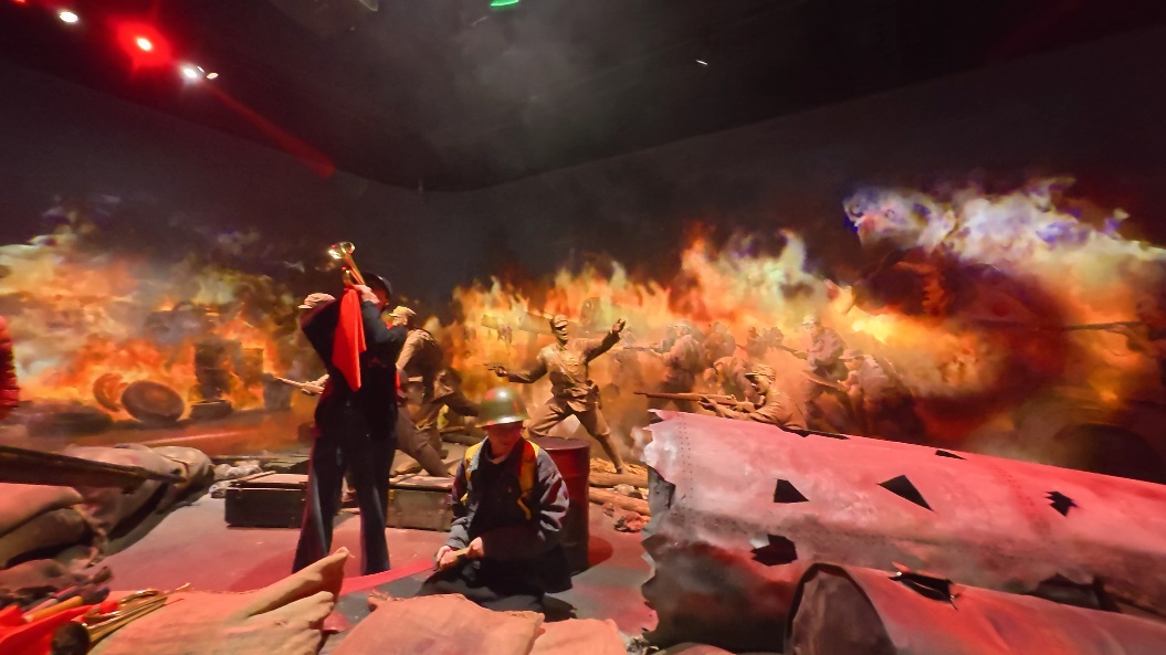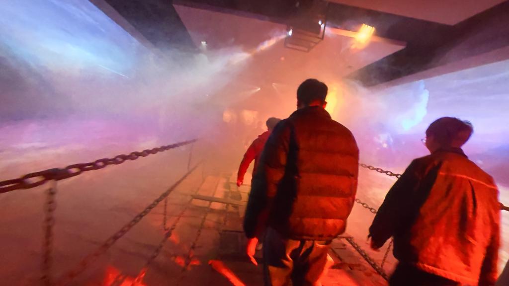 核心体验区内,科技与历史相融的场景,让革命故事变得鲜活可感。“飞夺泸定桥”体验项目中,党员们踏上模拟铁索桥,脚下投射出江水的光影,铁索随脚步微微晃动,耳畔传来隐约的咆哮轰鸣。22名战士的英勇无畏,不再是史料中冰冷的文字,而是触手可及的感动与敬佩。“长征”情景模拟区里,雪山场景的寒凉感、草地的仿真泥泞质感,让人直观感受极端环境的残酷。党员们行走其中,深切体会革命先辈在长征路上的坚韧不拔,感悟其中蕴含的坚定信念、顽强意志与团结力量。