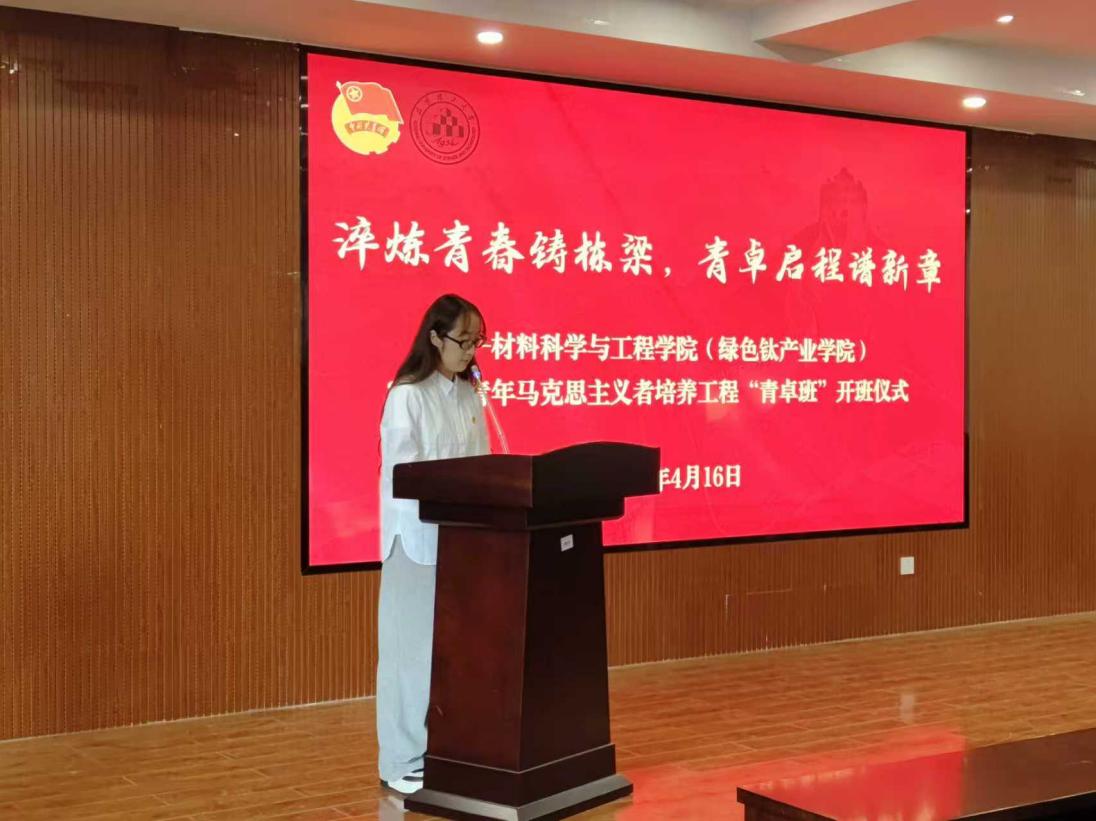 学院团委书记首先代表学院团委向全体“青卓班”学员表示祝贺与欢迎,并回顾了过去一年学院共青团围绕“四维材料工程”开展的特色工作与育人成效,阐释了学院团委为党育人、为国育才举措,并勉励全体学员珍惜在“青卓班”的学习机遇,将四点要求内化于心、外化于行,努力成长为信仰坚定、本领过硬、品德纯粹、敢于创新的新时代卓越人才。