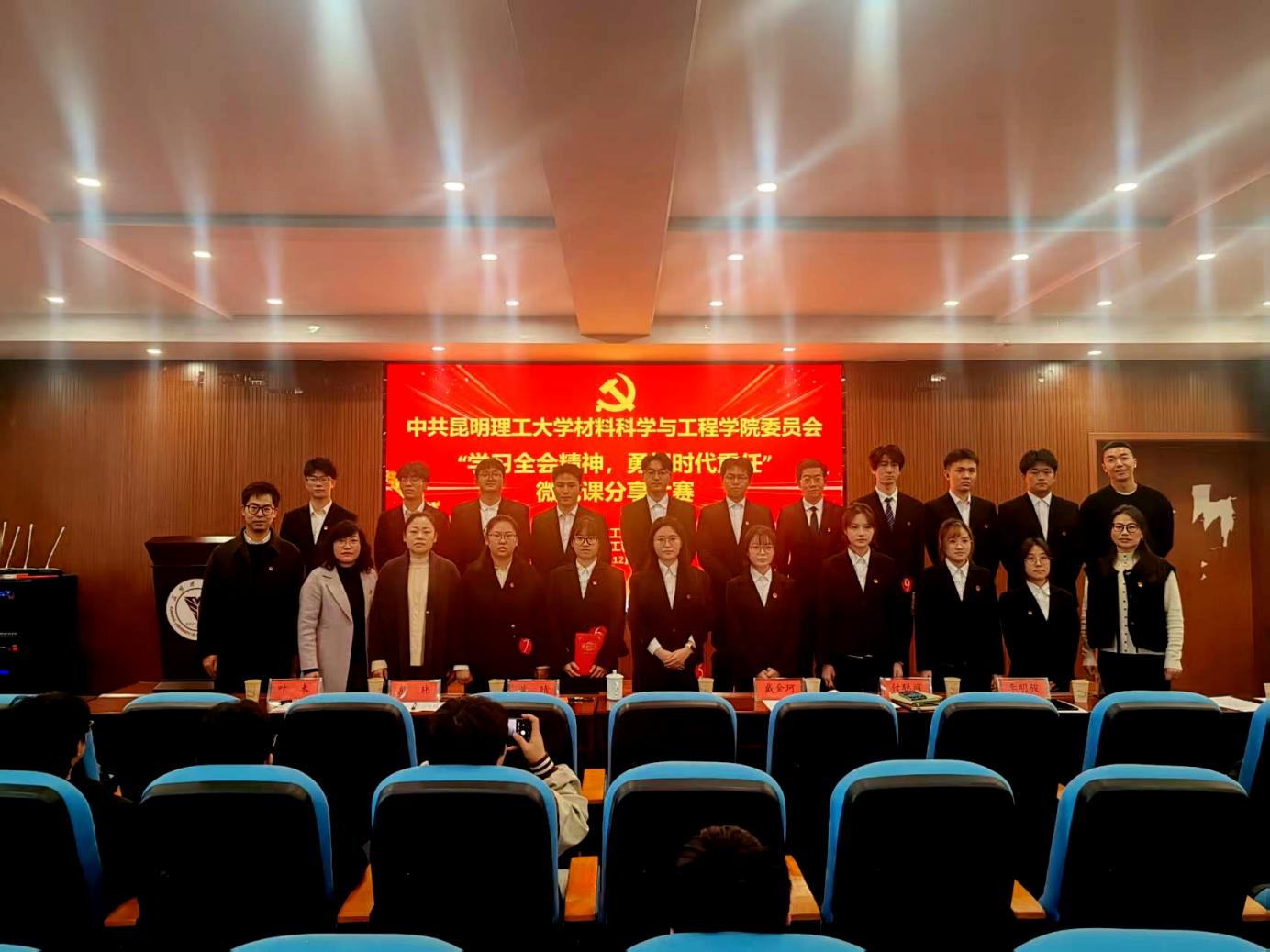 为深入学习贯彻党的二十届四中全会精神,推动党的创新理论在青年学子中内化于心、外化于行,引导广大学生厚植家国情怀、筑牢信仰根基,12月5日,昆明理工大学材料科学与工程学院党委在材料楼六楼报告厅成功举办“学习全会精神,勇担时代重任”微党课分享大赛决赛。大赛聚焦时代主题,以“小故事诠释大道理、小切口展现大情怀”为特色,通过青年视角、生动讲述,让党的理论可知可感、可学可践,助力学子深刻领会思想精髓,传承红色基因,肩负起新时代的使命担当。学院党委组织员、团委书记及各学生党支部书记担任评委,与现场师生一同聆听青年声音、感受思想力量。